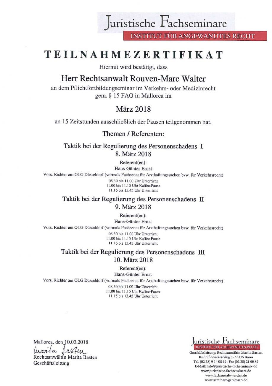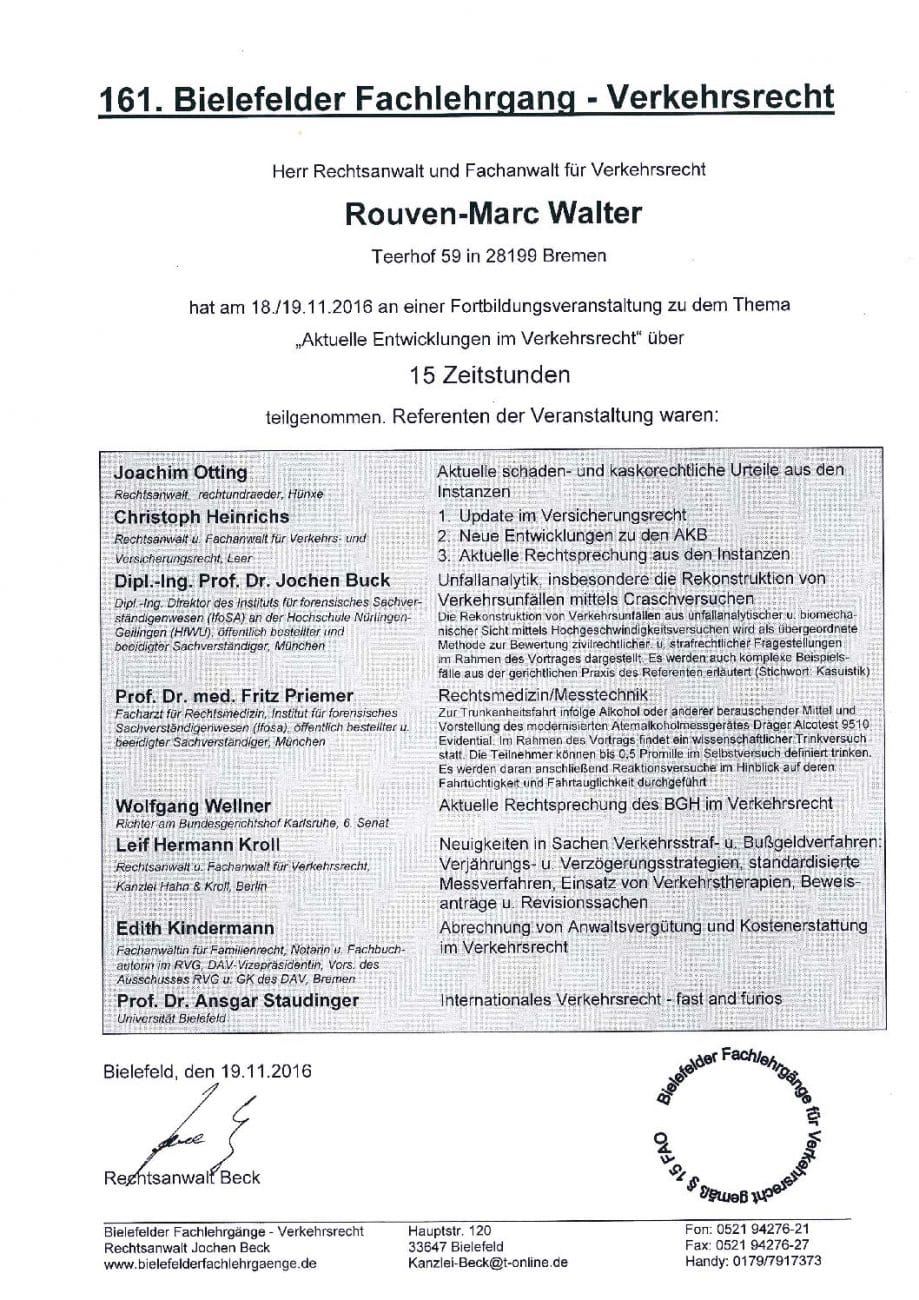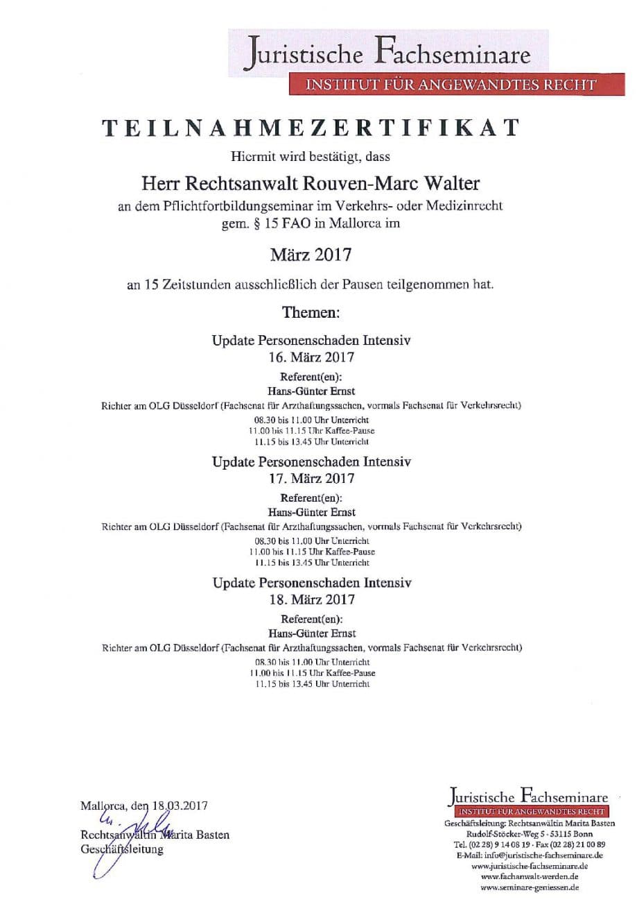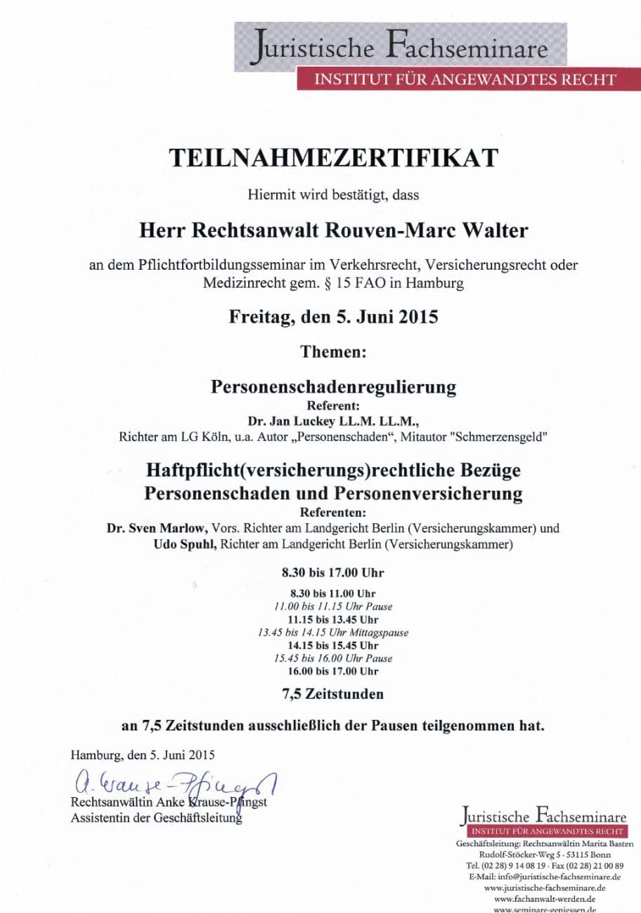 2007 erhielt ich – als einer der ersten Rechtsanwälte in Bremen – den Titel Fachanwalt für Verkehrsrecht von der bremischen Rechtsanwaltskammer verliehen. Gemeinsam mit meinem Kollegen Dr. Dr. Wambach, Fachanwalt für Medizinrecht, betreiben wir als Partner die Fachanwaltskanzlei für Personenschäden in Bremen. Engagierte Parteivertretung und Einfühlungsvermögen sind in diesem Bereich unerlässlich.