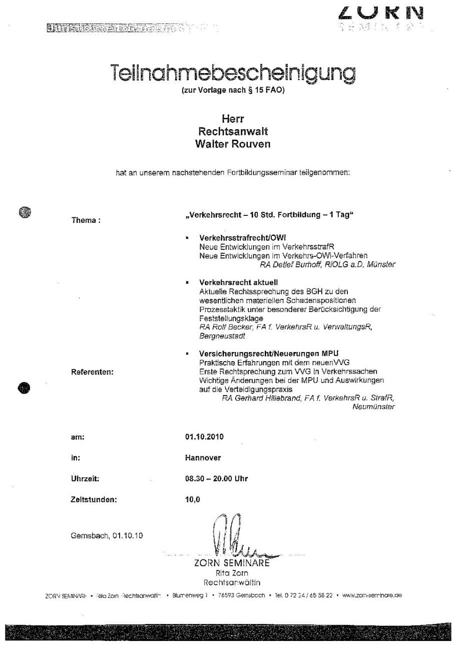 • Seit 2007 – als einer der ersten – Fachanwalt für Verkehrsrecht. Mitglied in der Arbeitsgemeinschaft Verkehrsrecht des Deutschen Anwaltsvereins